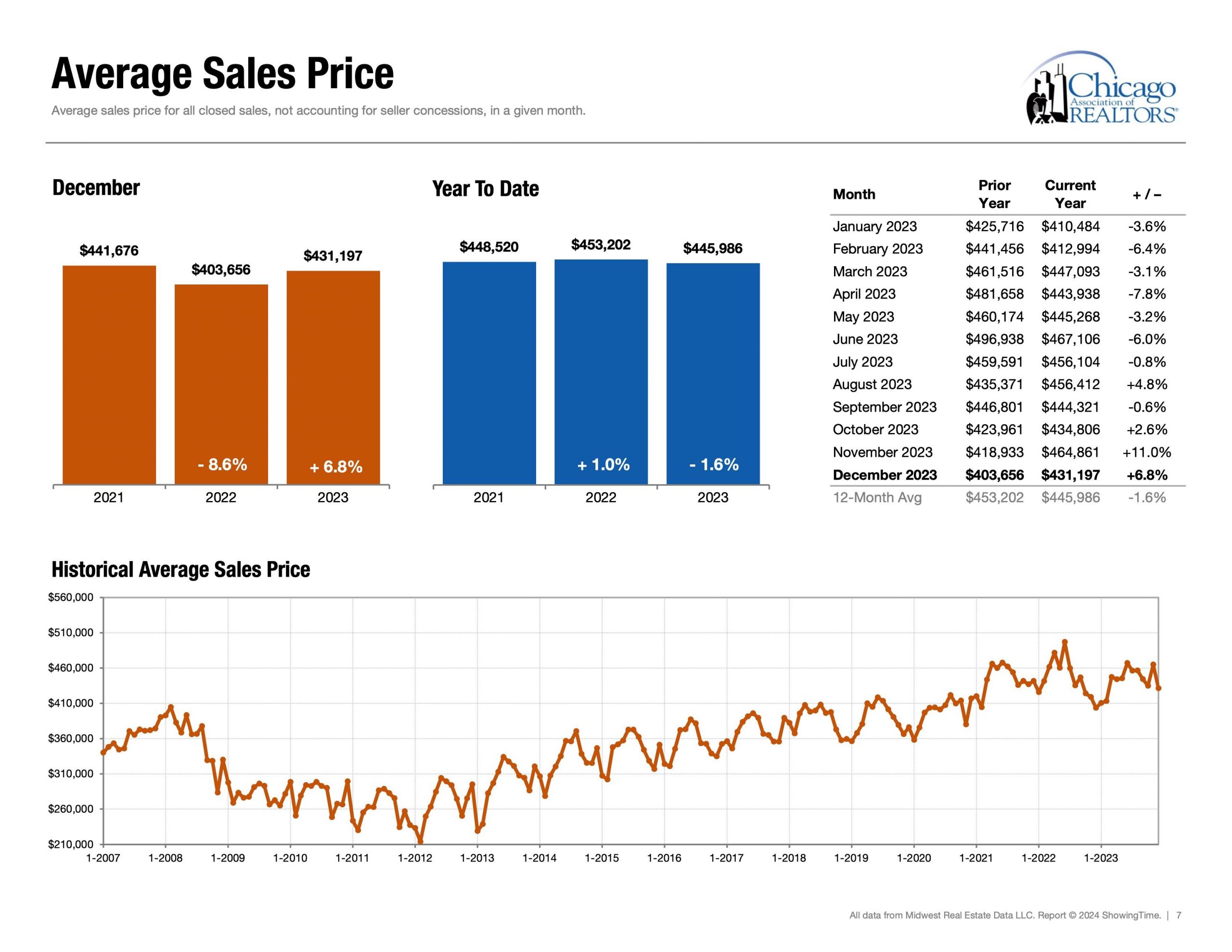 4,236 properties (Dec 2023)  This shows that the supply in the Chicago Market is 4,236 and the demand is 1,118. Henceforth, if we take 4,236 supply and divide that by 1,118 demand we get ~ 3.7889. The insight to take from this is that a buyer in Chicago right now has the opportunity to “look around” at ~3.7 properties and select which one they want from those options. Additionally, Dec 22′ vs Dec 23′ saw a decrease of -26.2%; to this end inventory is dwindling. Buyers do not have as many options as they did in 2021 or 2022. Lastly, let us look at negotiations.